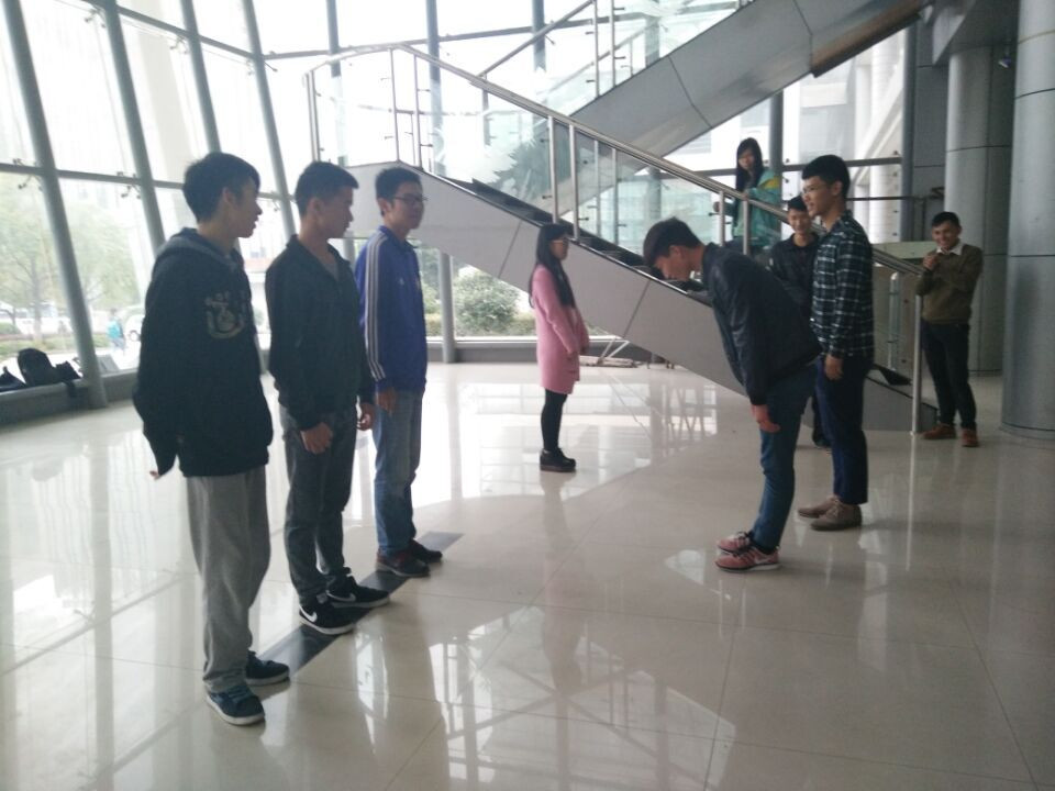 隨后,隗鳳林老師帶領同學們開展了素質拓展活動。圍繞著“記名字”、“A to B”、“責任心”3個項目活動進行了生動而有趣的拓展。活動的趣味性讓在場的每一位同學無不盡笑顏開,同時在每項活動的中間還穿插一些總結,真正讓同學們體會到了其中所蘊含的“團隊協(xié)作、責任意識、頭腦風暴”的知識。