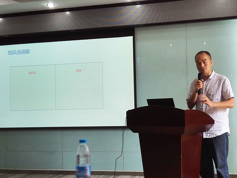 此次會議為期兩天,內容充實,7月12日上午主要是常務副總經理、技術總監翁高飛老師介紹了公司的發展現狀及未來的發展規劃,介紹了ECDIO工程教育模式的核心思想,荊職校區負責人李杰老師分享了分類培訓與因材施教的具體實施,技術中心涂建老師分享了“基于項目驅動微課設計”的設計流程。當天下午各位老師動手實踐微課設計,翁總對老師在制作中出現的問題及時給予講解。7月13日,專業老師制作微課并進行宣講由技術中心進行點評,武漢厚溥企業陳董事長也對微課設計的背景及其長遠的規劃做了重要講話。