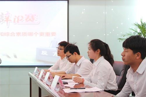 本次總決賽的辯題是“霧霾是經濟發展的必然產物?”和“.職業技能與綜合素質哪個更重要?”。本次大賽評委:武漢厚溥教育科技有限公司常務副總經理兼技術總監翁高飛、武漢厚溥教育科技有限公司技術中心蔡育龍老師、武漢厚溥教育科技有限公司技術中心張登勇老師、武漢厚溥教育科技有限公司管理規劃部周鳴老師、武漢厚溥教育科技有限公司短訓劃部朱滿芳老師、武漢厚溥教育科技有限公司市場中心李艷老師、武漢景寧人力資源有限公司張瓊老師和武漢景寧人力資源有限公司劉彩霞老師等。決賽現場來賓共有9個校區學院老師和學生共計100余人。