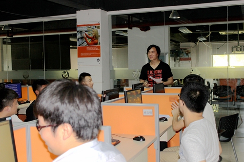 上游網(wǎng)商項(xiàng)目老師李江濤在和同學(xué)互動(dòng)