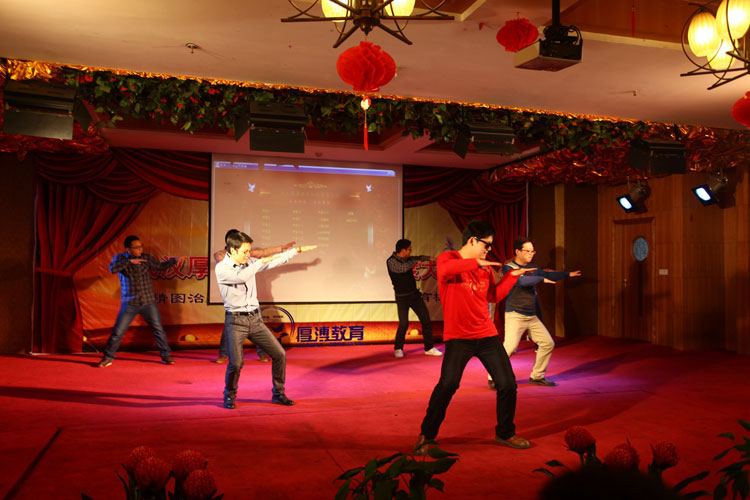 春敲起了戰(zhàn)鼓,年吹響了號角!2013年1月15日-17日,武漢厚溥教育科技有限公司2013年度年會在安徽省合肥市三河古鎮(zhèn)、冶父山、金孔雀度假村盛大舉行,武漢厚溥企業(yè)董事長陳相陽、執(zhí)行董事吳簡珍、總經(jīng)理胡俊等重要領(lǐng)導(dǎo)及全體同仁歡聚一堂。整個(gè)年會包括游玩三河古鎮(zhèn)、冶父山拓展、溫泉、全員聚餐、優(yōu)秀員工表彰及文藝匯演等環(huán)節(jié)。整個(gè)年會始終洋溢著振奮、進(jìn)取、熱烈、愉快的氣氛,精彩紛呈,亮點(diǎn)鮮明。