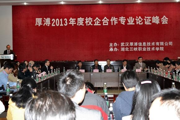 “厚溥2013年度校企合作論證峰會”于2013年11月2日下午在湖北三峽職業(yè)技術(shù)學院隆重舉行,此次論證峰會由武漢厚溥企業(yè)主辦,湖北三峽職業(yè)技術(shù)學院承辦。